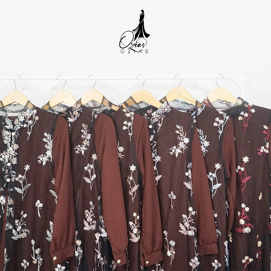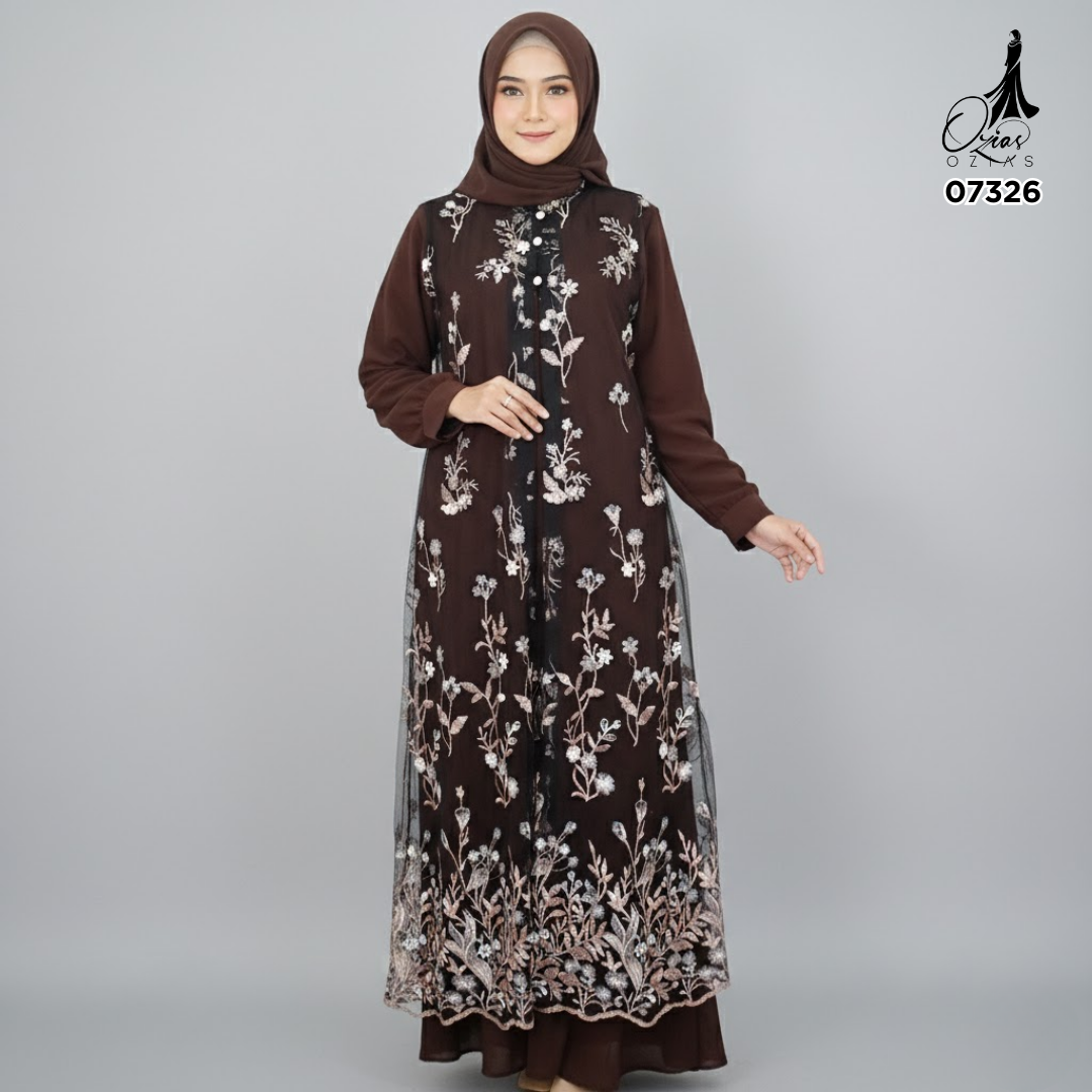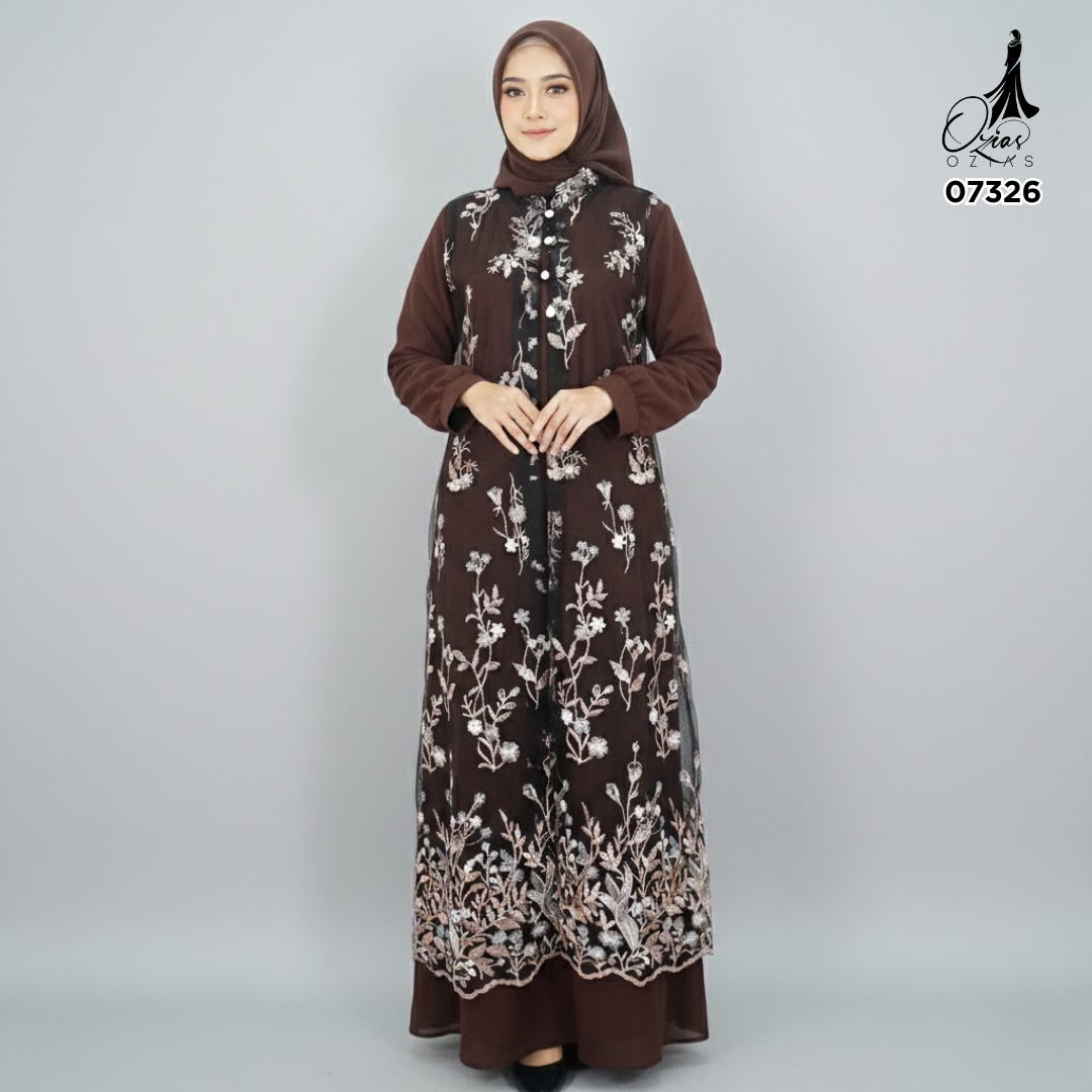 GAMIS OZIAS TILE MAHOGANY 07326 LD 105 I Gamis Kondangan Wanita I Gamis Fashion Lebaran.